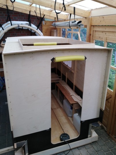 und die obere Haube ist auf Leichtbau getrimmt. Als Material für die Unterwanne kommt deshalb Siebdruckplatte zum Einsatz